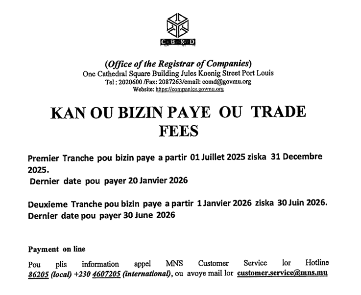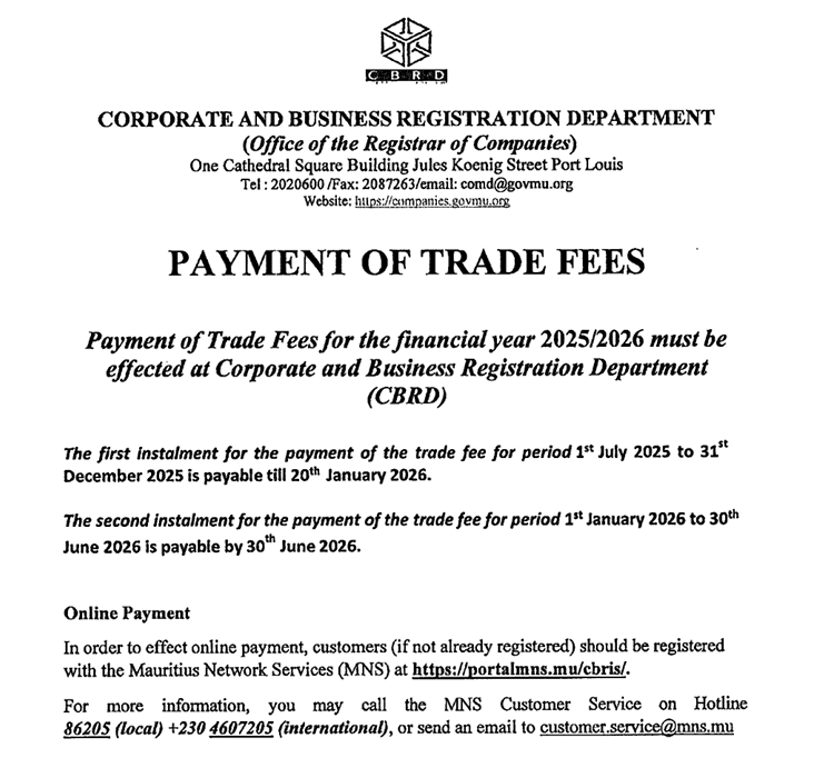 Online Payment of Fees for Classified Trades (Trade Fees)